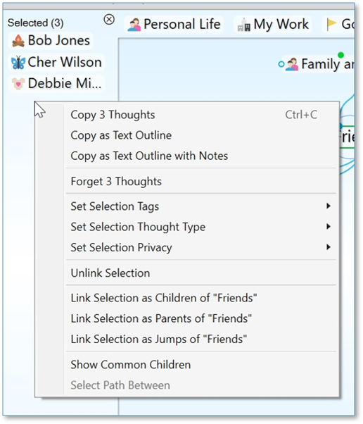 然后將選定的思想添加到TheBrain的Selection框中,以便一次對大量的想法進行編輯。