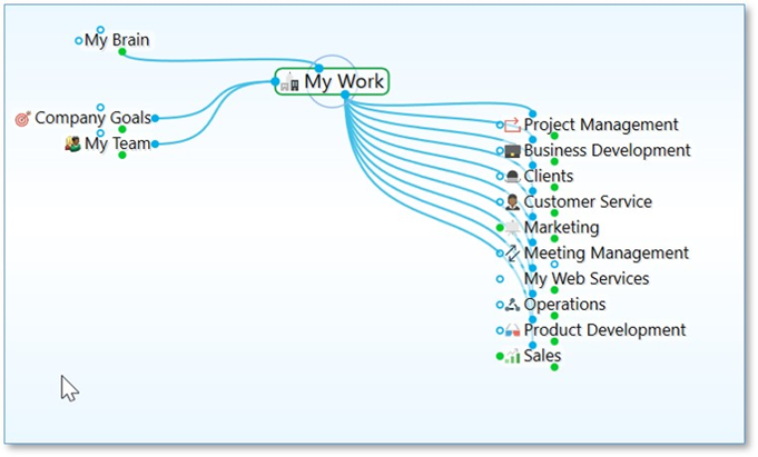 Normal視圖:用于關注活動的思想并在上方顯示與其父思想、在其下的子思想以及將思想跳到左側相關的信息。下圖為正常視圖中的大腦: