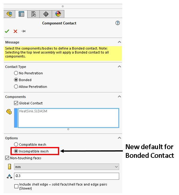 新的默認設置:鍵合觸點不兼容的網格(易于使用)