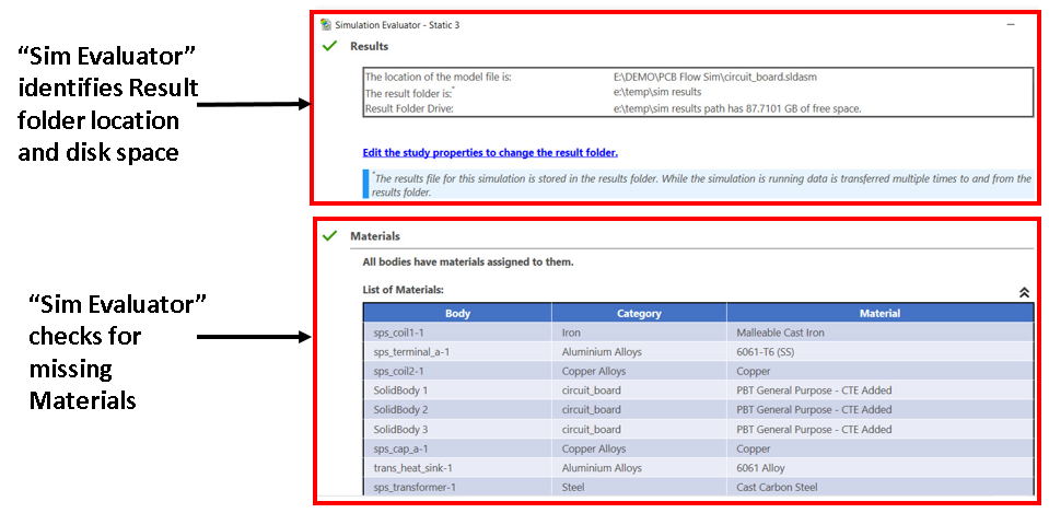 如果您因模擬研究設置不正確而使模擬失敗而感到沮喪,請查看Simulation Evaluator。它檢查與結果文件夾,結果驅動器的存儲容量,模擬中使用的材料以及網格體積有關的條件。