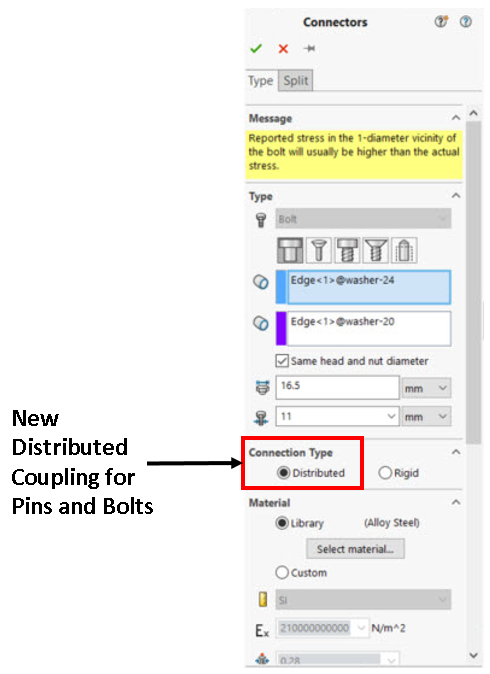 新功能:銷釘和螺栓的分布式耦合(連接器的更逼真的結果)
