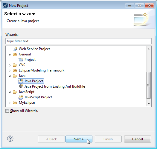選擇File>New>Project,展開Java,選擇Java項目,然后單擊下一步。
