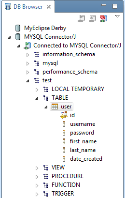 在數據庫瀏覽器中,將MySQL Connector/J擴展到用戶表。