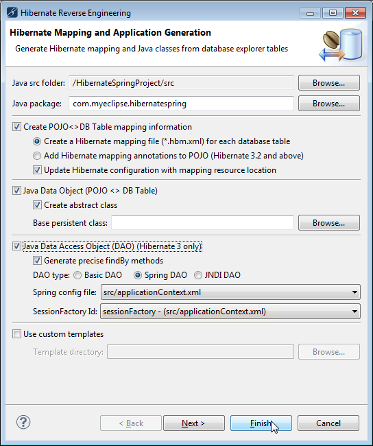 將Hibernate類生成到Java包中,并創建Spring Bean。