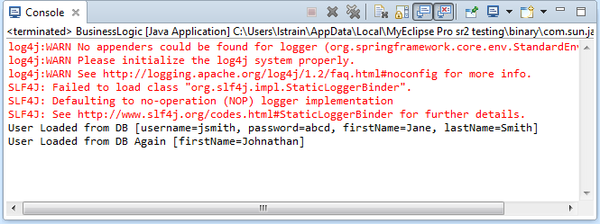 右鍵單擊BusinessLogic.java,選擇 Run As>Java Application。Console視圖將顯示結果。