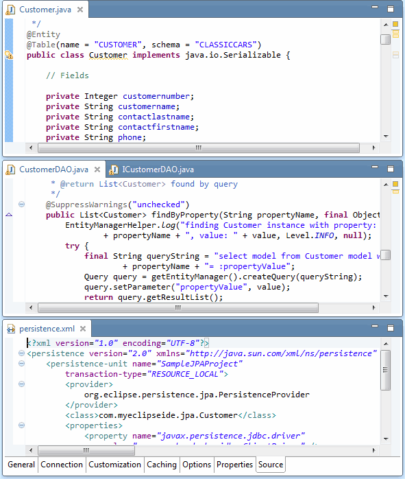 MyEclipse Java Persistence透視圖為面向jpa的任務提供了最佳的編輯器和視圖布局。