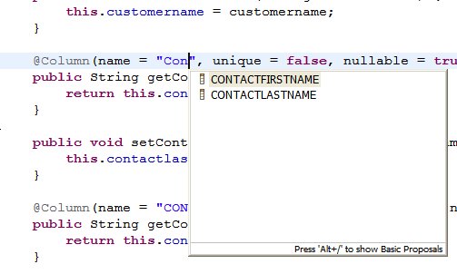 逆向工程過程是完全可定制的。使用JPA逆向工程向導,可以選擇要生成的工件以及該工件所基于的數據庫表。