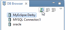 在數據庫瀏覽器中,選擇MyEclipse Derby連接,然后單擊。