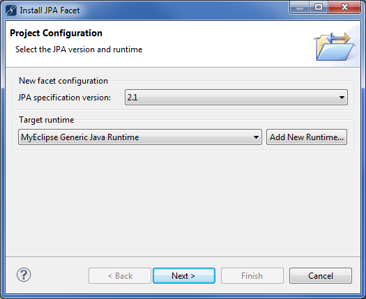 在目標運行時下拉列表中選擇MyEclipse通用Java運行時,然后單擊下一步。