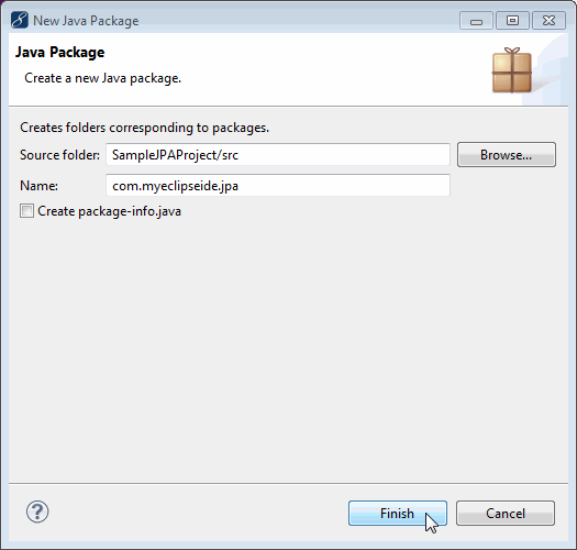 在“Name”字段中輸入com.myeclipseide.jpa,然后單擊“完成”。