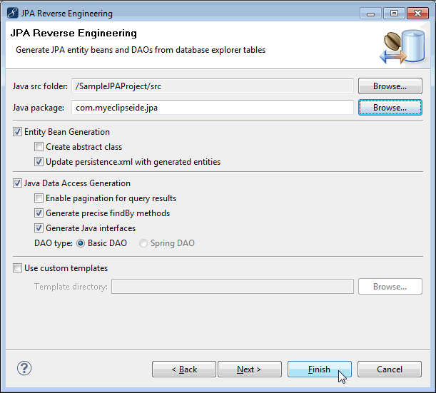 右鍵單擊該項目,然后選擇JPA Tools > Generate Entities & DAOs。