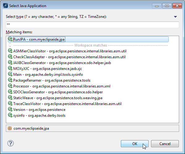 選擇RunJPA應用程序,然后單擊“確定”。