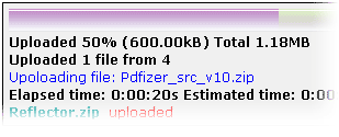 該控件允許您查看文件上傳到服務器的狀態,您可以看到目前正在被服務器接收的一部分上傳內容、正在上傳的文件、已經被上傳的文件、當前數據傳輸的速度、已用時間和預計時間等。