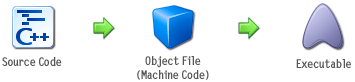 When an application is being created, the Compiler will compile the application source code into several object files made of machine language code. Afterward, the object files are linked together to create the final executable.