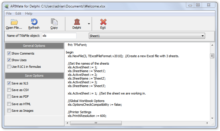 ApiMate工具的顯示需要在.XLSX文件中用 Delphi 代碼生成單元格: