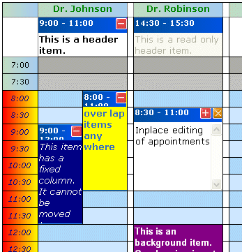 Sidebar can be left, right, left & right or on top of Planner with indication of occupied time slots