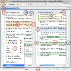 DeltaWalker—simple, approachable, fun to use.File, folder comparison & synchronization.DeltaWalker, Deltopia's file and directory comparison and synchronization software application/diff tool, lets you compare, edit, and merge files and synchronize directories—local and remote. It does so visually and intuitively, offering clarity, productivity, ease of use, native looks and top performance.