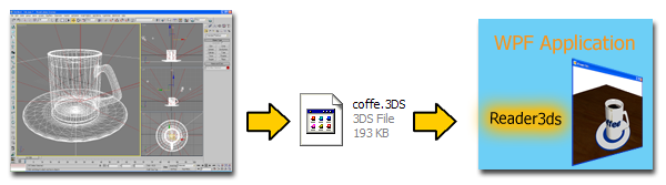 Reader3ds is a class library than can be used to read 3D models from a 3ds file and to use them in a WPF (.Net 3.0) application. This way you can define 3D models in 3D modeling application and simply use the models in you application. The library can import much more complex 3ds files than Viewer3ds and online 3ds file converter. It also has many advanced options for importing 3ds file.