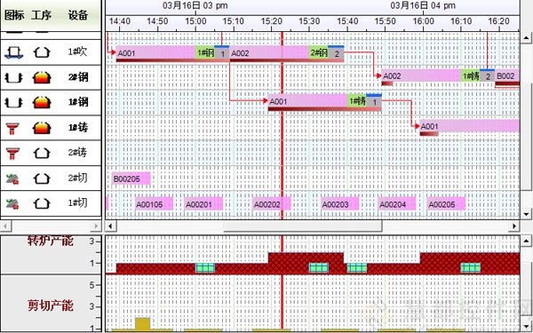 將甘特圖生產計劃、資源調度成功應用于鋼鐵行業,對轉爐煉鋼、吹氬精煉、鋼包爐精煉、連鑄、剪切等進行生產計劃的顯示和調度。
