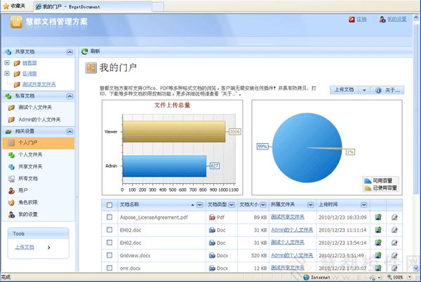 1、企業門戶,經典文檔管理布局,文檔數量、內容及相關功能設置一目了然。