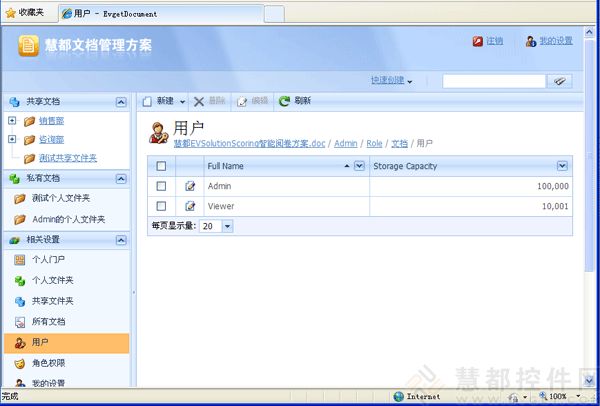 配置用戶權限等級嚴密、安全性高,對用戶管理更加高效,保護了用戶的私有文檔,也實現了公有文檔的共享。 |