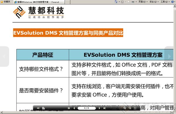 EvDMS文檔在線瀏覽方案與同類產品對比: