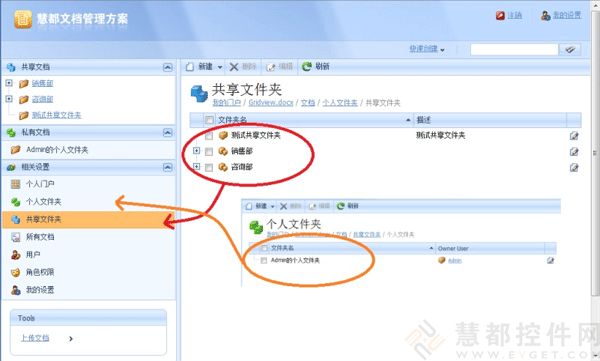 文檔結構管理,管理員可定義層級目錄結構,普通用戶擁有專屬的私有目錄。