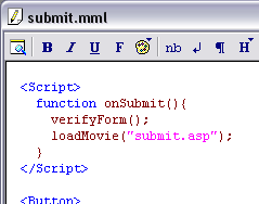 For convenient integration with Flash content, MML tags can also be used inside normal .swf Flash templates. This allows MML tags to be placed on their appropriate visual context, simplifying the development of rich user interfaces. |