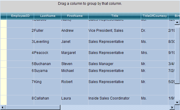 支持?jǐn)?shù)據(jù)分層顯示,使得數(shù)據(jù)編輯變得更簡便。通過對HierarchicalView屬性的設(shè)置完成對數(shù)據(jù)的分層顯示。支持對子層數(shù)據(jù)顯示的客戶定制,比如隱藏列、改變顏色等,還支持在分層視圖和父行視圖中進(jìn)行選擇。
