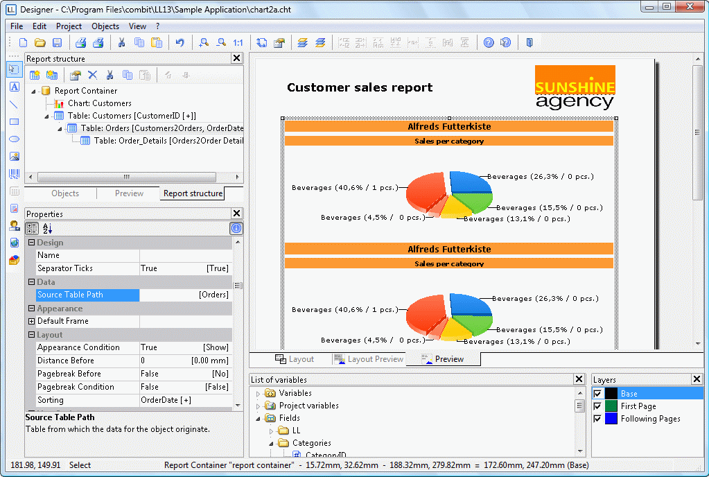 List & Label是一款功能強大的圖表報表控件,支持多種開發(fā)平臺且分發(fā)免費。通過List & Label報表生成器,開發(fā)人員只需添加數行代碼便可在他們的程序中添加報表,子報表,簡單列表,多表單,交叉表,圖表,表格,標簽,打印,預覽,導出以及Web報表。