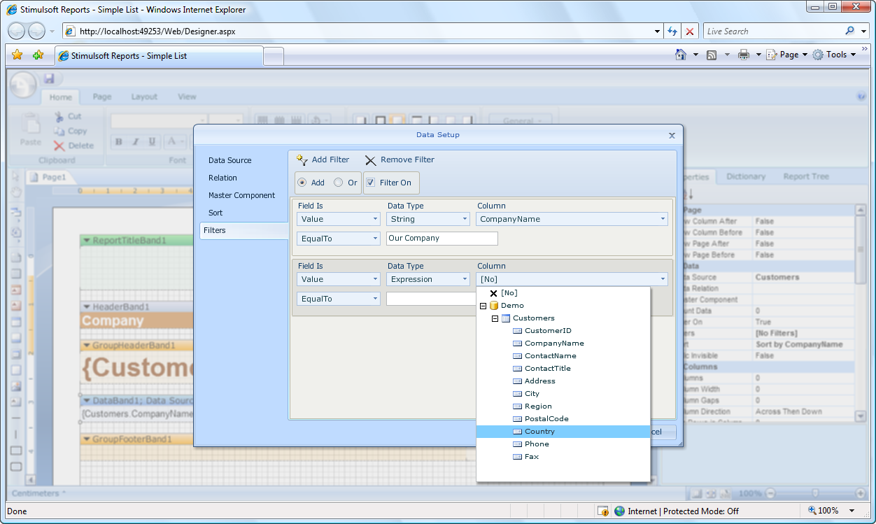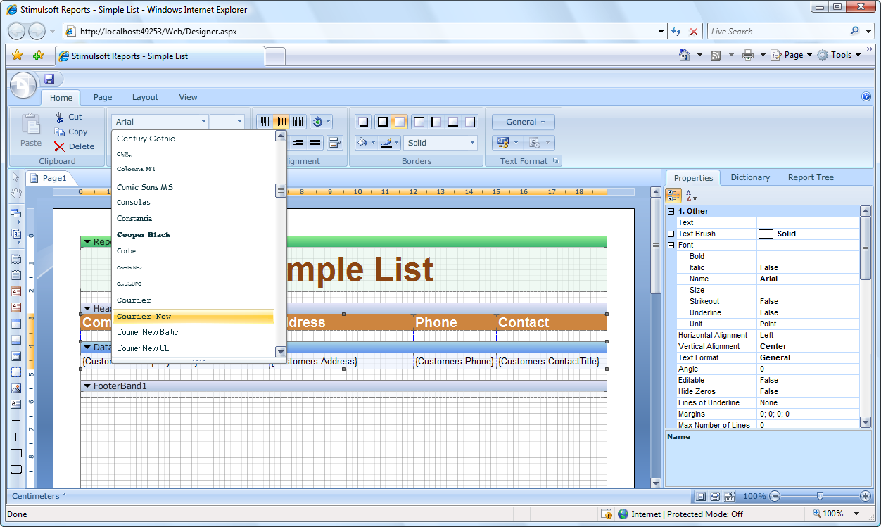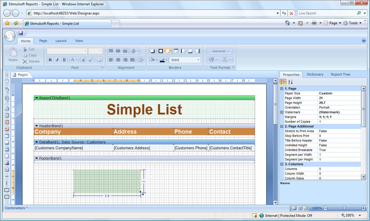 Are you get used to web applications that have limited functionality in comparison with desktop applications? If you use our Stimulsoft Reports Designer.Web – forget about this! Our developers did their best to add all necessary functions which a developer need. The following features are available: fully functional Ribbon interface, visual component builder, undo-redo functions, functions for working with clipboard, tabular editing, zooming, and many other useful functions are available in the product.